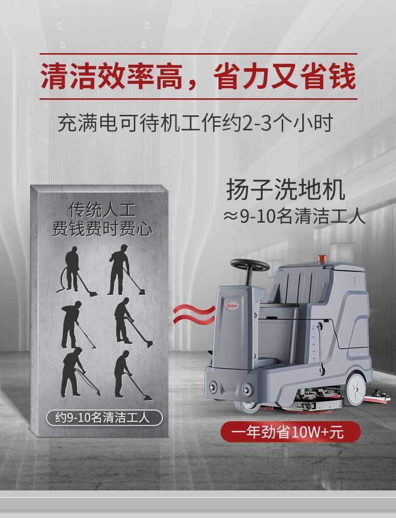 扬子YZ-X90驾驶式洗地机,拖地机,厂家直销,省30%成本,工作时间:2-3小时,重量:236kg,效率:4500m2/h,大于15人工作效率,干净不留痕,免费试机,买贵包退.专业的售后团队,免费上门指导操作和维护.扬子YZ-X90分:免维护款和锂电款,想进一步了解,请咨询在线客服或拨打官方免费热线,客服详细解答产品参数和最新活动价格