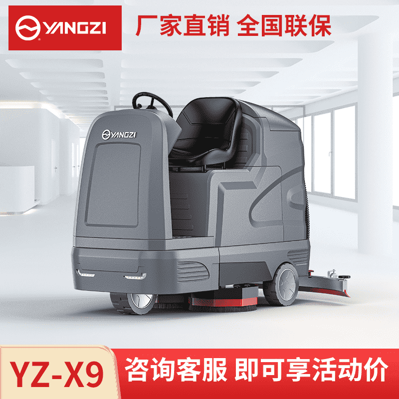 扬子YZ-X9驾驶式洗地机,拖地机,厂家直销,省30%成本,工作时间:6-8小时,重量:535kg,效率:6500m2/h,大于25人工作效率,干净不留痕,免费试机,买贵包退.专业的售后团队,免费上门指导操作和维护.扬子YZ-X9分:免维护款和锂电款,想进一步了解,请咨询在线客服或拨打官方免费热线,客服详细解答产品参数和最新活动价格