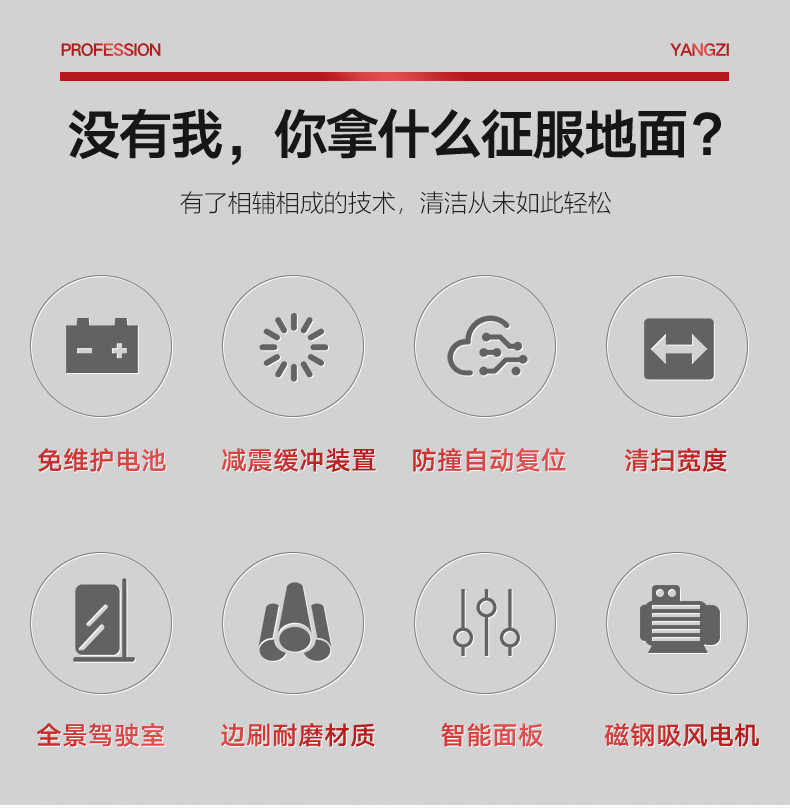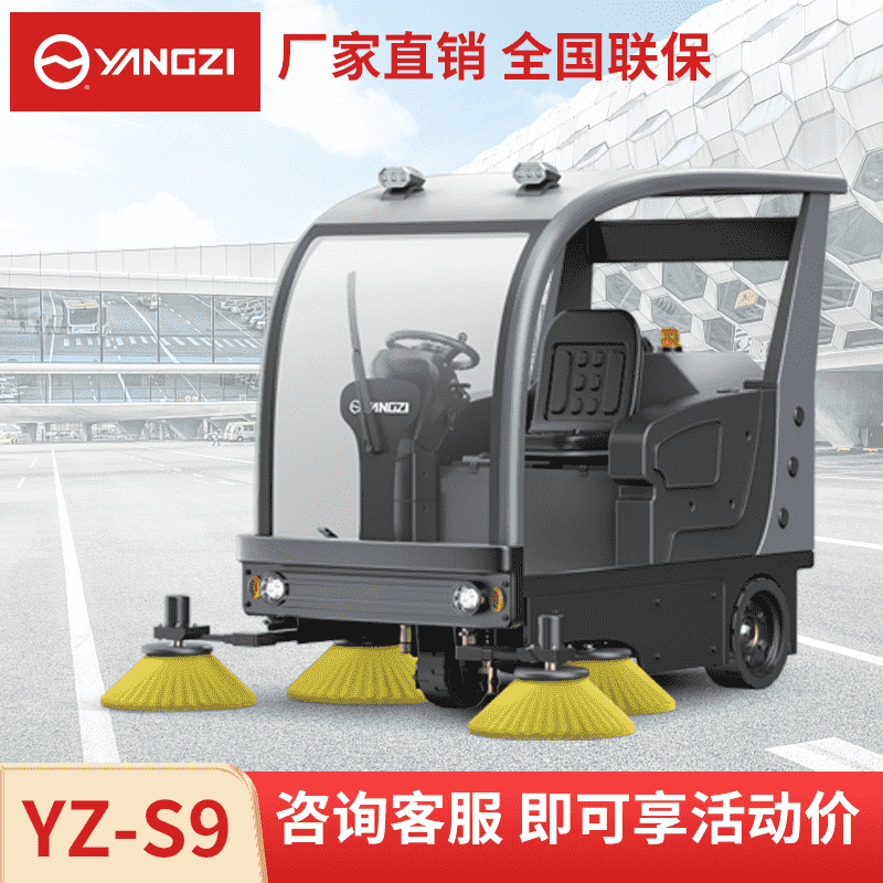 扬子YZ-S9驾驶式扫地车,清扫车,厂家直销,省30%成本,工作时间:6h,重量:760kg,效率:15000m2/h,大于15人工作效率,干净不留痕,免费试机,买贵包退.专业的售后团队,免费上门指导操作和维护.扬子YZ-S9分普通款和锂电款,想进一步了解,请咨询在线客服或拨打官方免费热线,客服详细解答产品参数和最新活动价格