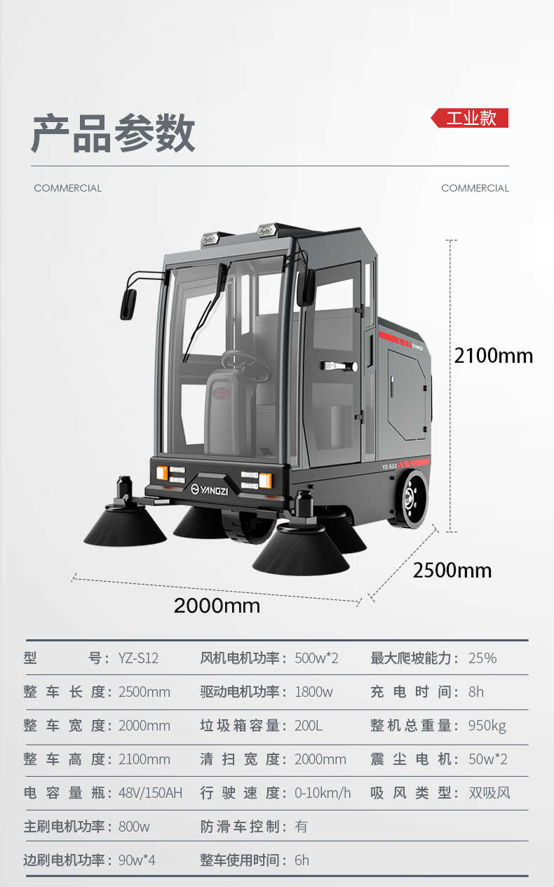 扬子YZ-S12驾驶式扫地车,清扫车,厂家直销,省30%成本,工作时间:6h,重量:950kg,效率:24600m2/h,大于10人工作效率,干净不留痕,免费试机,买贵包退.专业的售后团队,免费上门指导操作和维护.扬子YZ-S12分普通款和锂电款,想进一步了解,请咨询在线客服或拨打官方免费热线,客服详细解答产品参数和最新活动价格