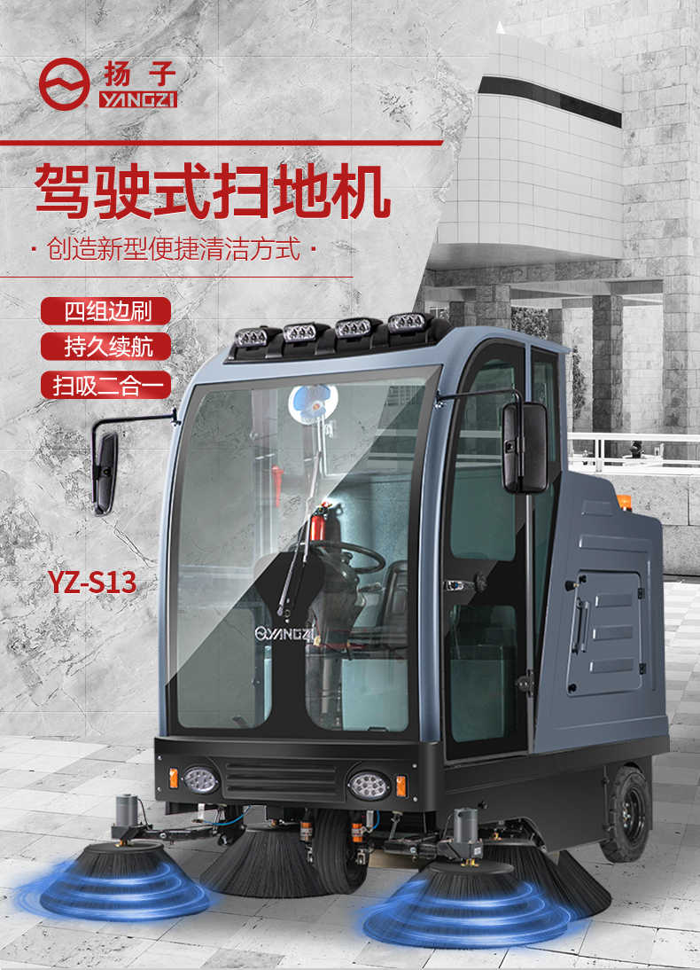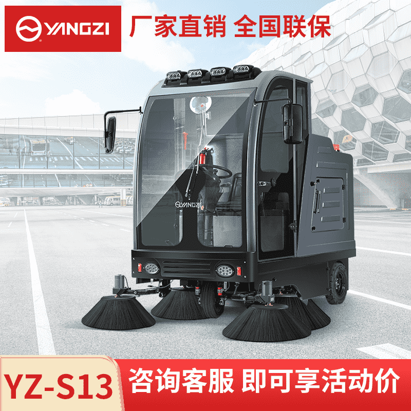 扬子YZ-S13驾驶式扫地车,清扫车,厂家直销,省30%成本,工作时间:5.5h,重量:990kg,效率:25600m2/h,大于20人工作效率,干净不留痕,免费试机,买贵包退.专业的售后团队,免费上门指导操作和维护.扬子YZ-S13分普通款和锂电款,想进一步了解,请咨询在线客服或拨打官方免费热线,客服详细解答产品参数和最新活动价格