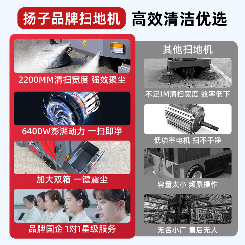 扬子YZ-SP25-15驾驶式扫地车,清扫车,厂家直销,省50%成本,工作时间:4-6h,重量:950kg,效率:22000平方每小时,大于20人工作效率,干净不留痕,免费试机,买贵包退.专业的售后团队,免费上门指导操作和维护.扬子YZ-SP25-15电瓶有铅酸和锂电的,电瓶容量可以选配,想进一步了解,请咨询在线客服或拨打官方免费热线,客服详细解答产品参数和最新活动价格